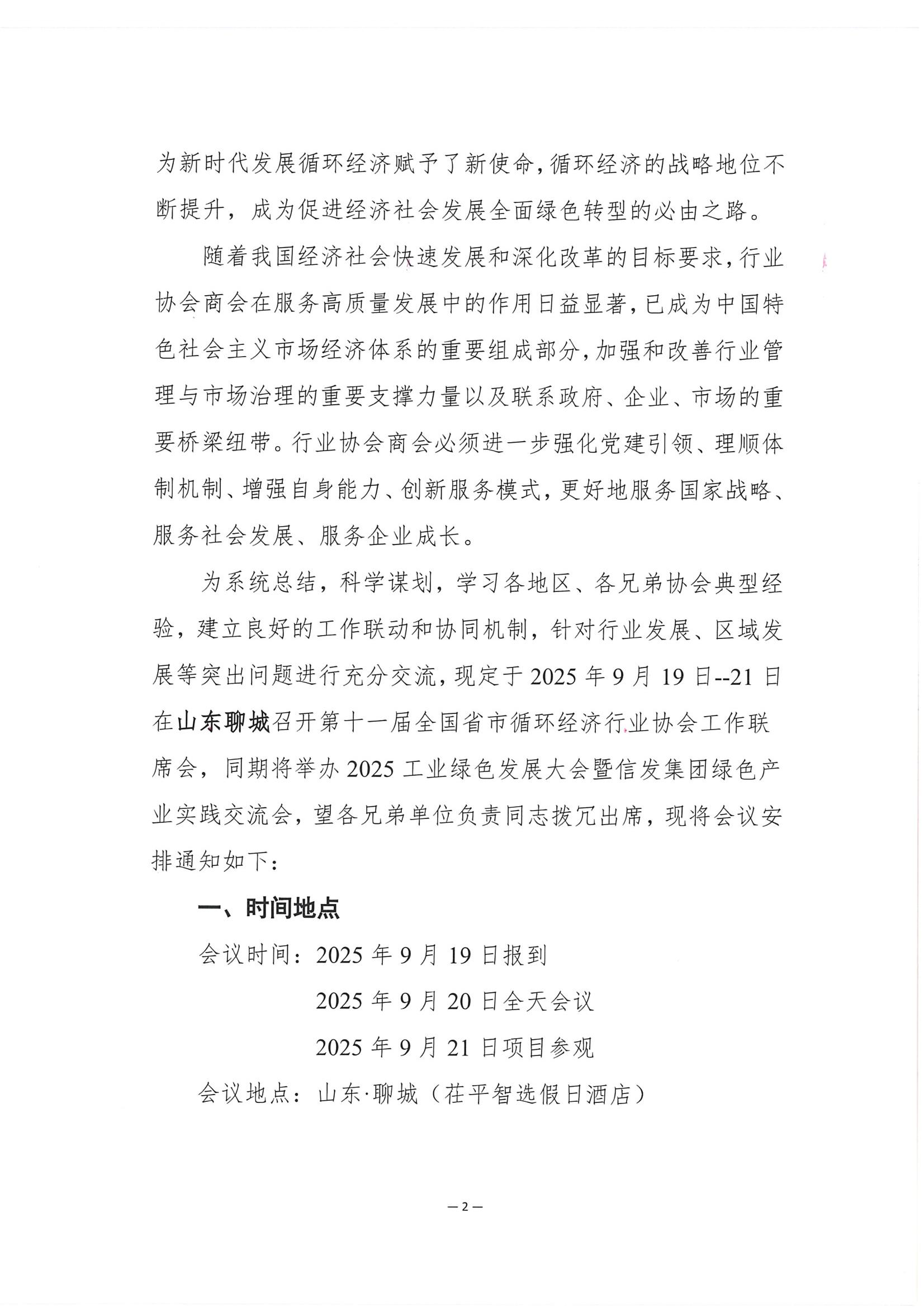 关于召开第十一届全国省市循环经济 行业协会工作联席会的通知